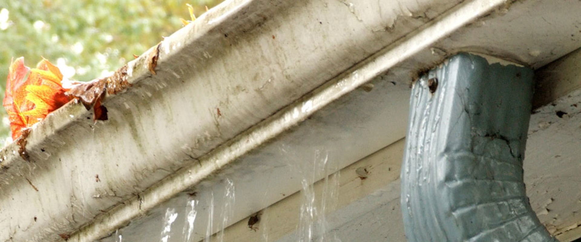 To ensure that the gutters drain properly, make sure that they are angled (½ inch per 10 feet) toward a downspout. For gutters longer than 40 feet, it's best to tilt the gutter downward from the center to a downspout at each end. Or you can tilt the gutters downward from each end toward a single downspout placed in the center of the duct. The risks of gutters becoming clogged include flooding in the basement, foundation damage, overflowing and falling gutters, damage to the ceiling and fascia boards, roof damage, and more.